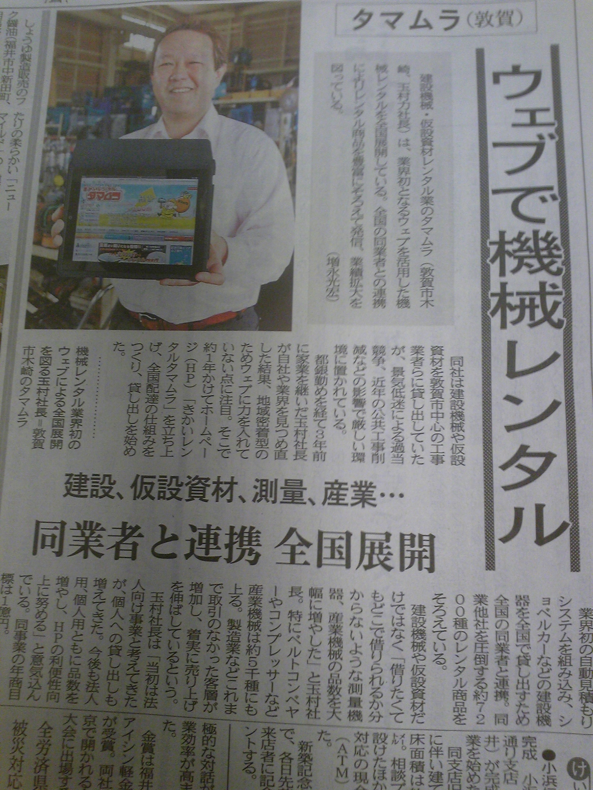 建設工業新聞福井版(2013年1月14日付)に紹介されました。